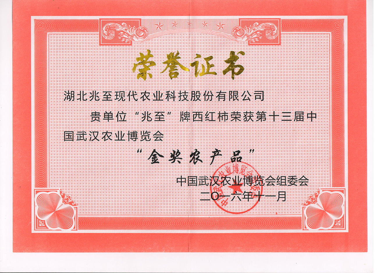第十三屆中國武漢農(nóng)博會金獎
